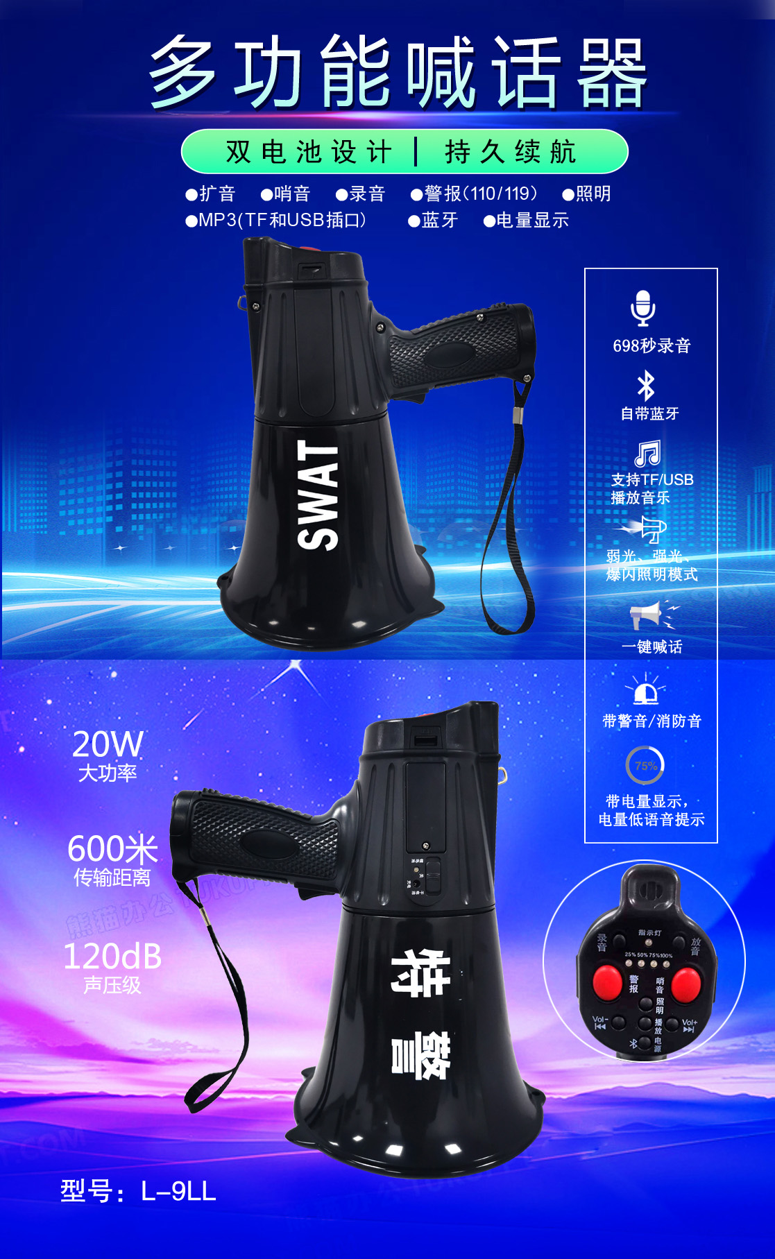 • 专业设计,外观独特、新颖,操作简便的多功能喊话器