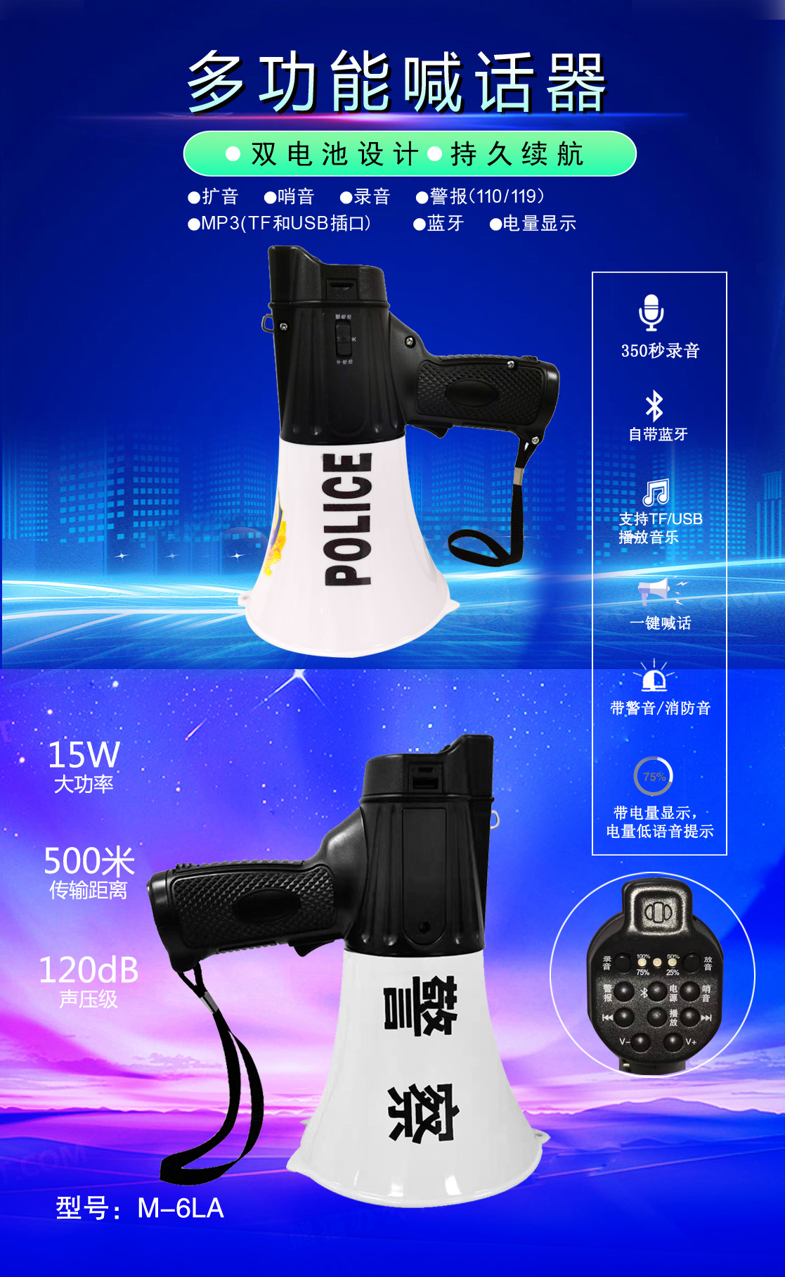 • 专业设计,外观独特、新颖,操作简便的多功能喊话器