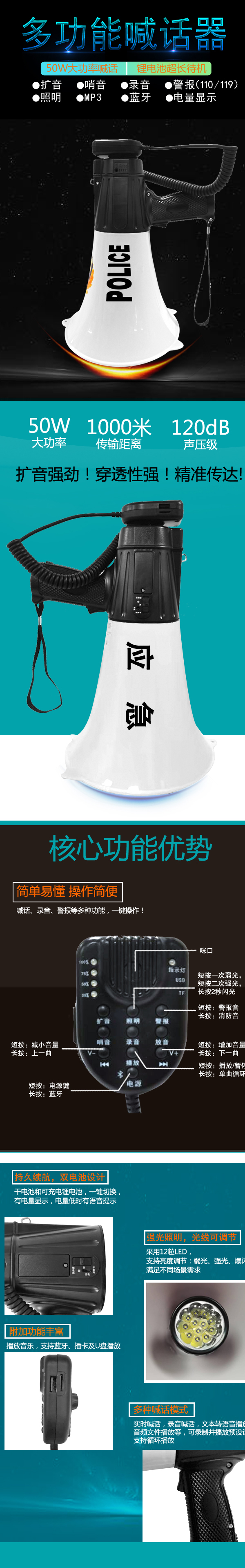• 专业设计,外观独特、新颖,操作简便的多功能喊话器